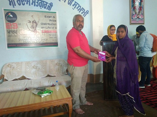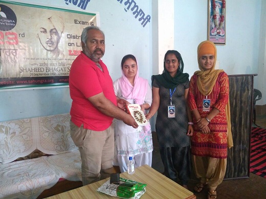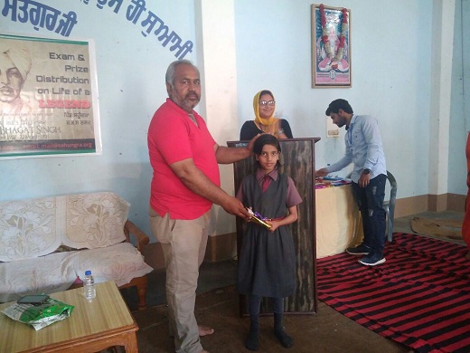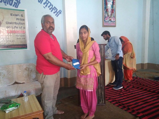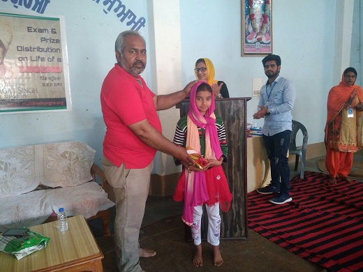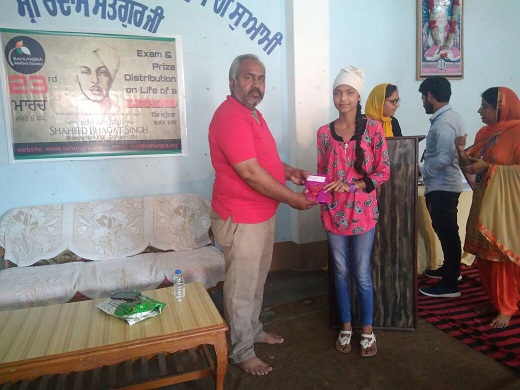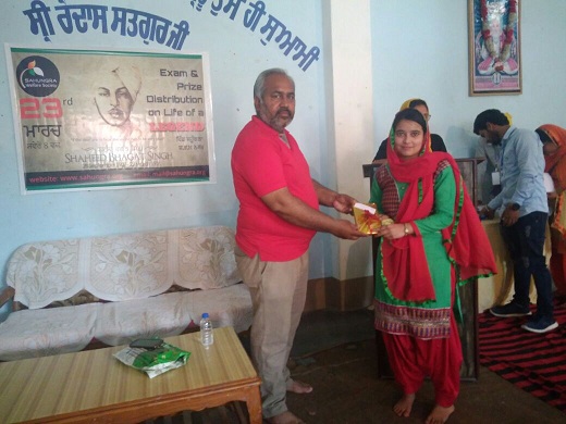 Today on dated 23rd march 2018,village Sahungra,block Saroya, given tribute on legency of Shaheed-e-Azam Sardar Bhagat Singh,Rajguru and Sukhdev from Sahungra Welfare Society by conducting an exam on their biography and prize distribution programme. In this event more than 70 students participated enthusiastically from 5th standard to 12th standard. Master Mukhesh Kumar was present as chief guest on this occasion.He entitled Shaheed Bhagat Singh as ideal inspiration of youth.The Chief guest blessed the winners of exam. At closing of event members of Sahungra Welfare Society presented a book to the Chief Guest as a token of regard. Sahungra Welfare Society arranged refreshment to all participants.