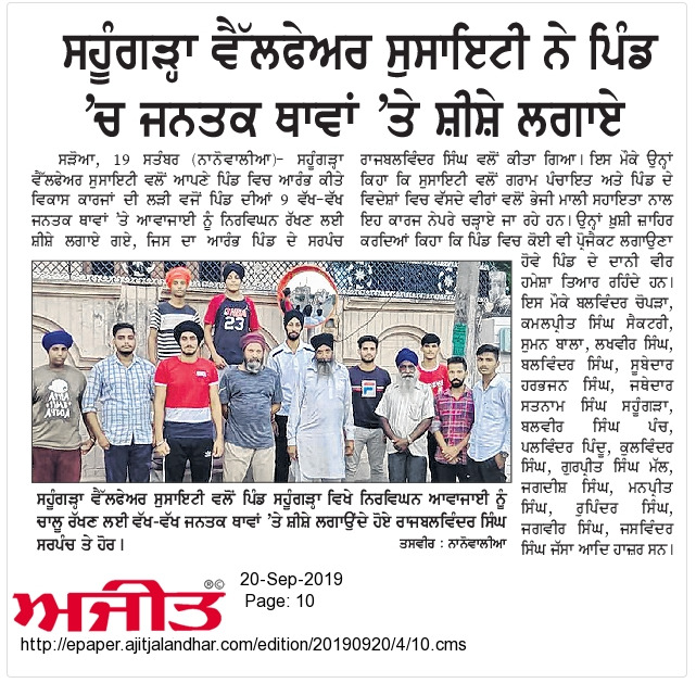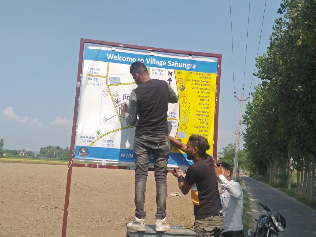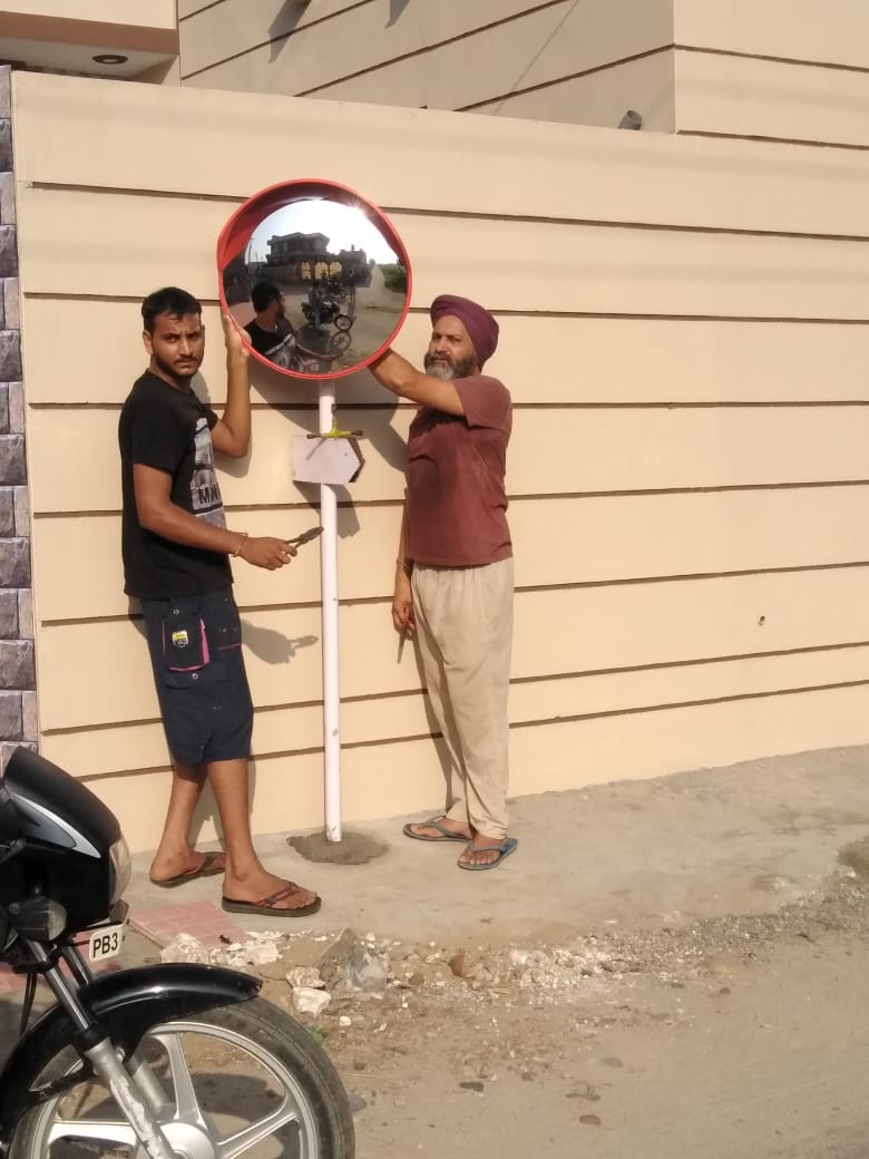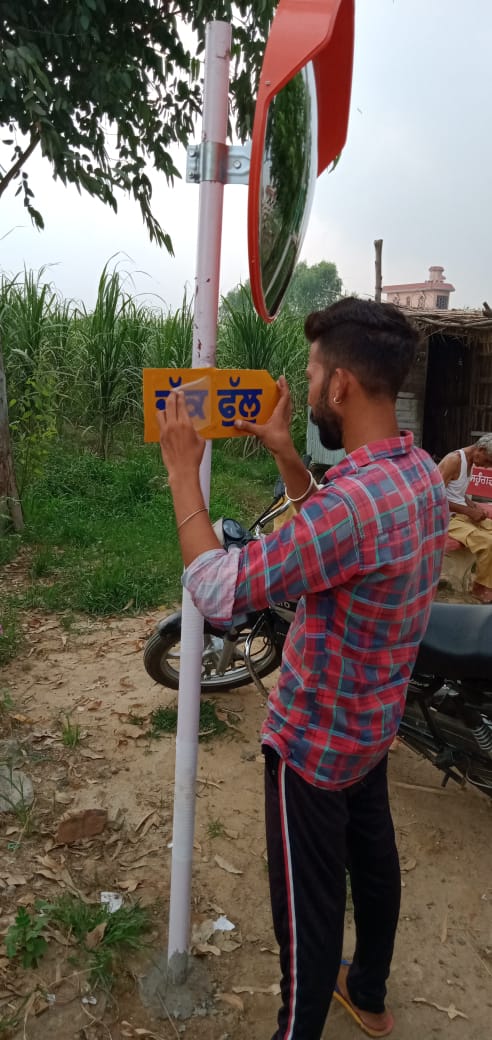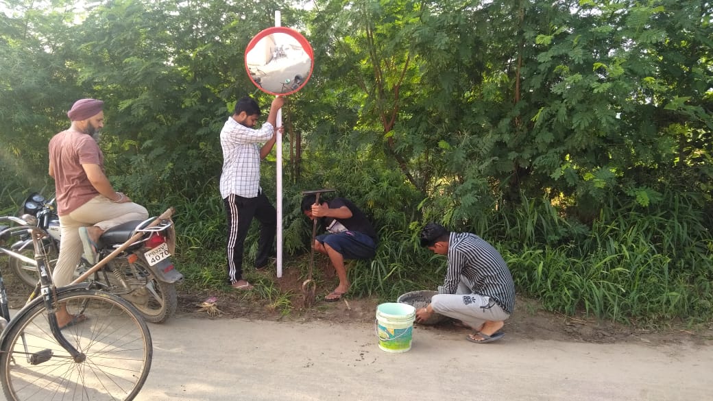 As we all know, Sahungra welfare society celebrated its 29th event Disha Darpan under which total of 10 reflector glasses was installed by at the dangerous juncture of village Sahungra to prevent road accidents and further mention names of roads and villages with radium. Society set its target under the Disha Darpan in the span of 1 month with the support of fellow colleagues and members. The purpose of this project is to minimize the accident risks and its prone areas in addition to beautification of the village. The head man of Village Mr. Rajbalwinder Singh appreciates the efforts of Sahungra welfare society.